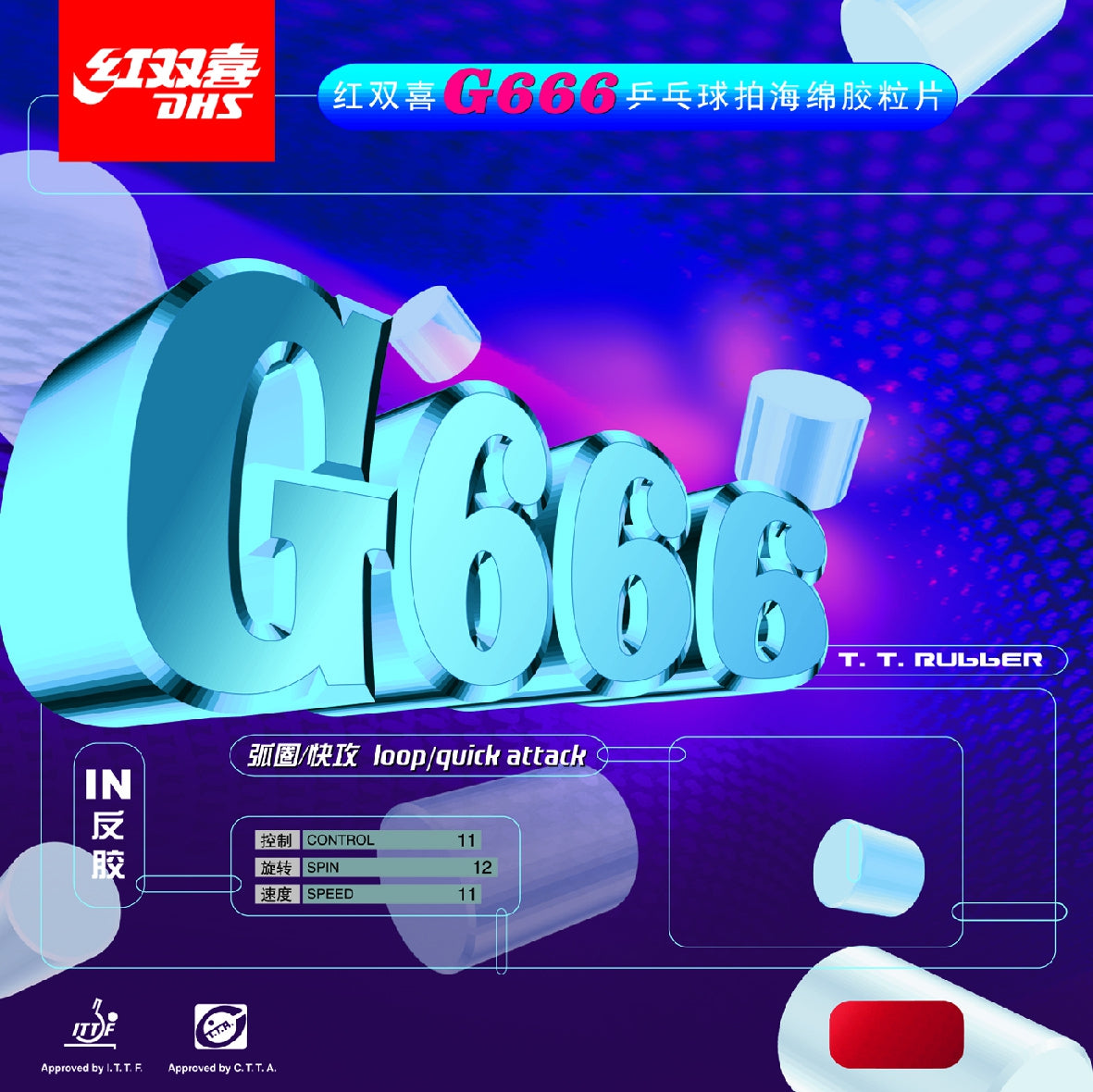 The special molecular structure of the rubber makes it even more elastic. In addition, the G666 has the typical Chinese sticky surface, which retains its characteristic properties even after a long time. The special elasticity of the underlay provides the rubber with the ball contact optimal control over the placement and effect of the ball. This new G666 is particularly suitable for the controlled and variable top spin game from 2nd position.